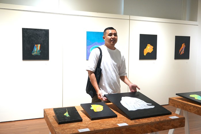 國立虎尾科技大學10/15(二)舉行「我,我們 - 黃啟軒、蔡佳吟聯展」開幕暨導覽活動,此次聯展透過藝術家在藝術實踐中由公共視角轉向個人視野,關注多元議題揭示其更為私密的創作探索與思考,不僅是個體與群體關係的反思,更是自我與他者間的深層對話。