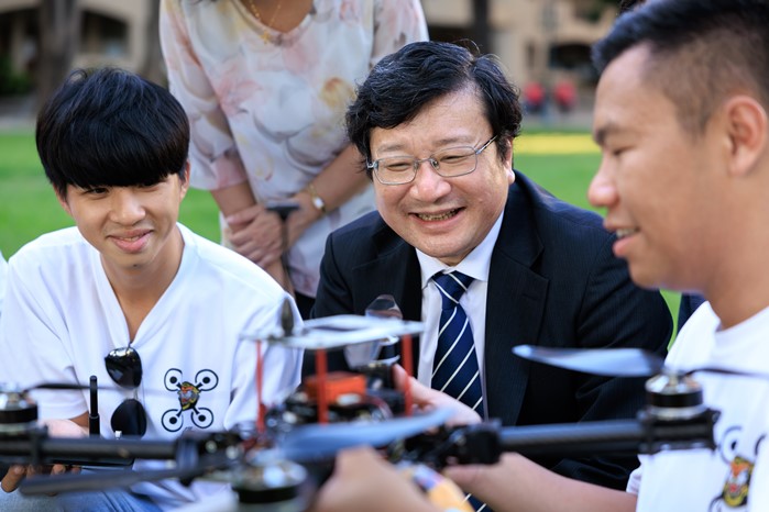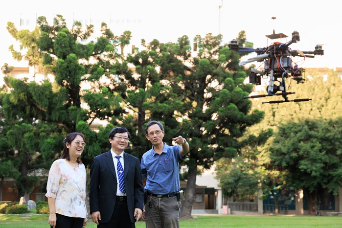 除了精準健康團隊之外,另一個讓張校長感到自豪的AI應用成果,就是無人機搭載AI晶片的多元賦能。「包含太陽能板、風力發電機或工廠煙囪的巡檢,乃至於農地作物的監測等,都可以用AI無人機來代勞。」飛機工程系教授鄒杰烔表示,目前第一線的實務應用已經紛紛落地,有非常多搭載AI晶片的無人機投入產業服務,邊緣運算技術使得無人機所拍攝的影像可以即刻分析,返航時初步的資訊並可以直接輸出。鄒老師以農田噴灑農藥為例,在導入AI無人機之後,有無病蟲害危機便一清二楚,農民不再需要像過往一樣全部無差別噴灑,既可以節省成本,又能提高作物的品質。