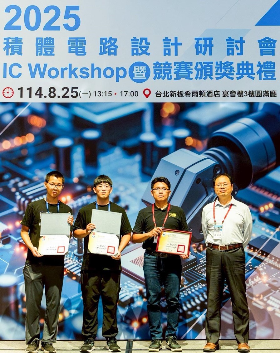 國立虎尾科技大學電機工程系師生團隊參與「2025全國大學校院積體電路(IC)設計競賽」於5/17(六)決賽勇奪研究所全客戶設計組特優(第一名),亦獲得該組佳作與設計完成獎等佳績,展現虎科大在積體電路設計領域的堅實實力與潛力。