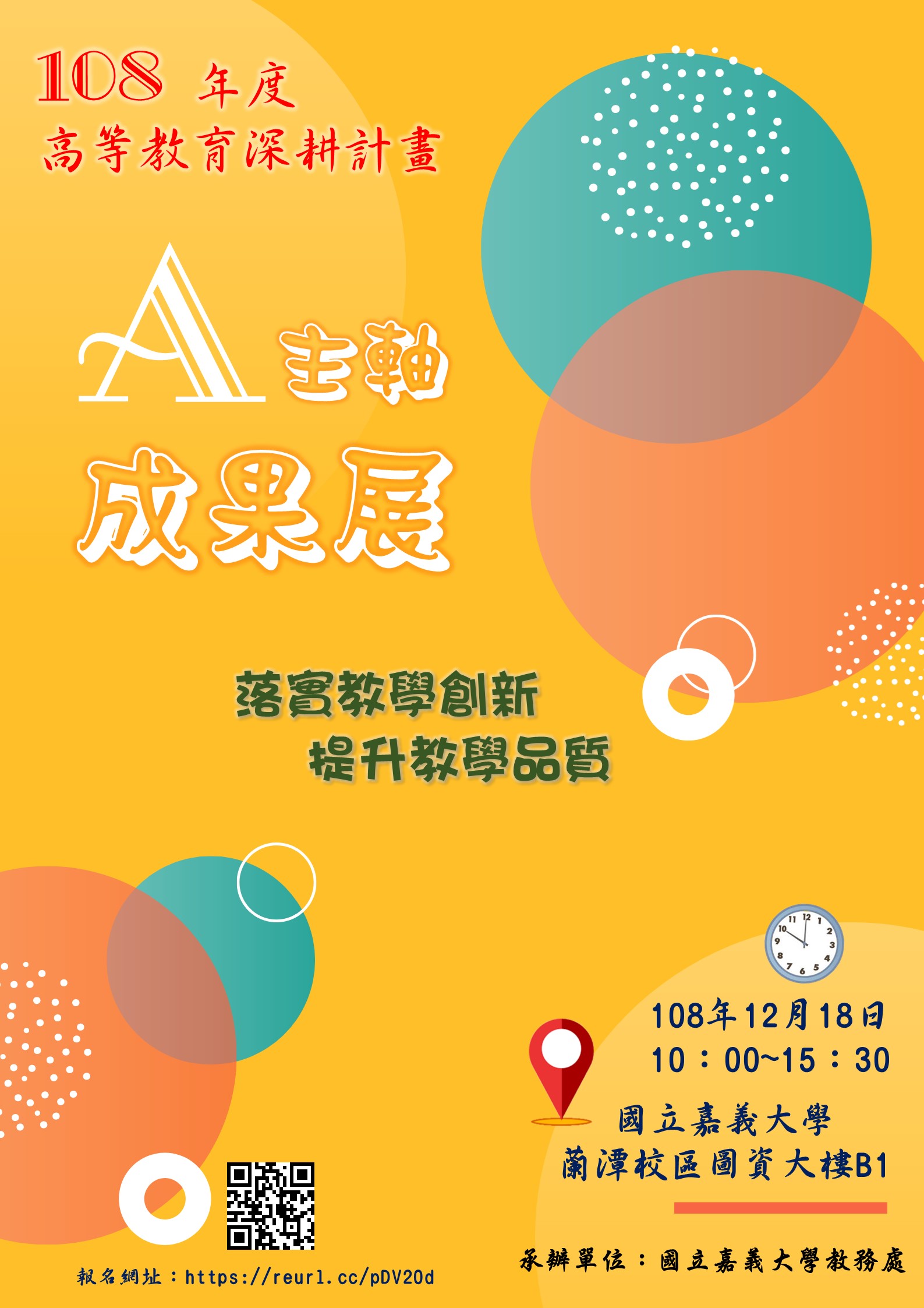 嘉義大學舉辦「108年度高等教育深耕計畫A主軸成果展」,請踴躍參加。