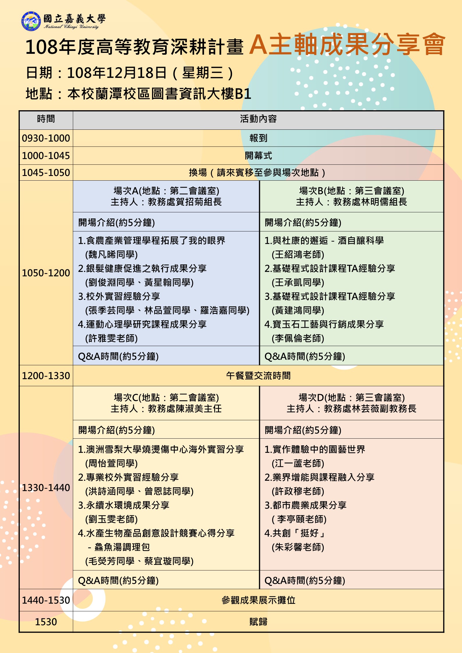 2、下午場(C、D):108年12月18日(星期三)下午1時30分至下午2時45分。